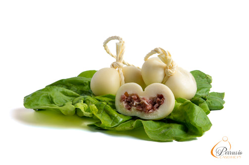 Fatti della stessa pasta del Moscione, i formaggi Farciti sono la nostra offerta di sfizioseria. Il Diavoletto, cacetto affumicato ripieno di olive nere cotte al forno, condite con finocchietto e peperoncino. L'Angioletto, cacetto bianco ripieno di Prosciutto Crudo Parma o San Daniele. La Schiacciatina, formaggio affumicato ripieno di olive verdi, tagliate a rondella, condite con olio e peperoncino. Il Salamino Farcito, sfoglia affumicata ripiena di prosciutto Cotto Leoncini.Â